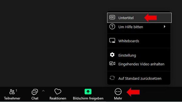 Klicken Sie dazu in der Menüleiste auf “Untertitel" (falls es direkt angeboten wird) oder auf “Mehr” und dann auf “Untertitel”: