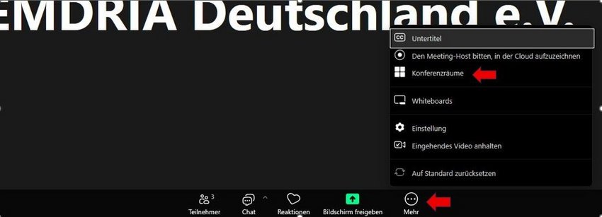 Klicken Sie nicht auf “Meeting verlassen”, da Sie hiermit den EMDRIA Tag ganz verlassen und dann erneut über den Link beitreten und aus dem Warteraum eingelassen werden müssen.
